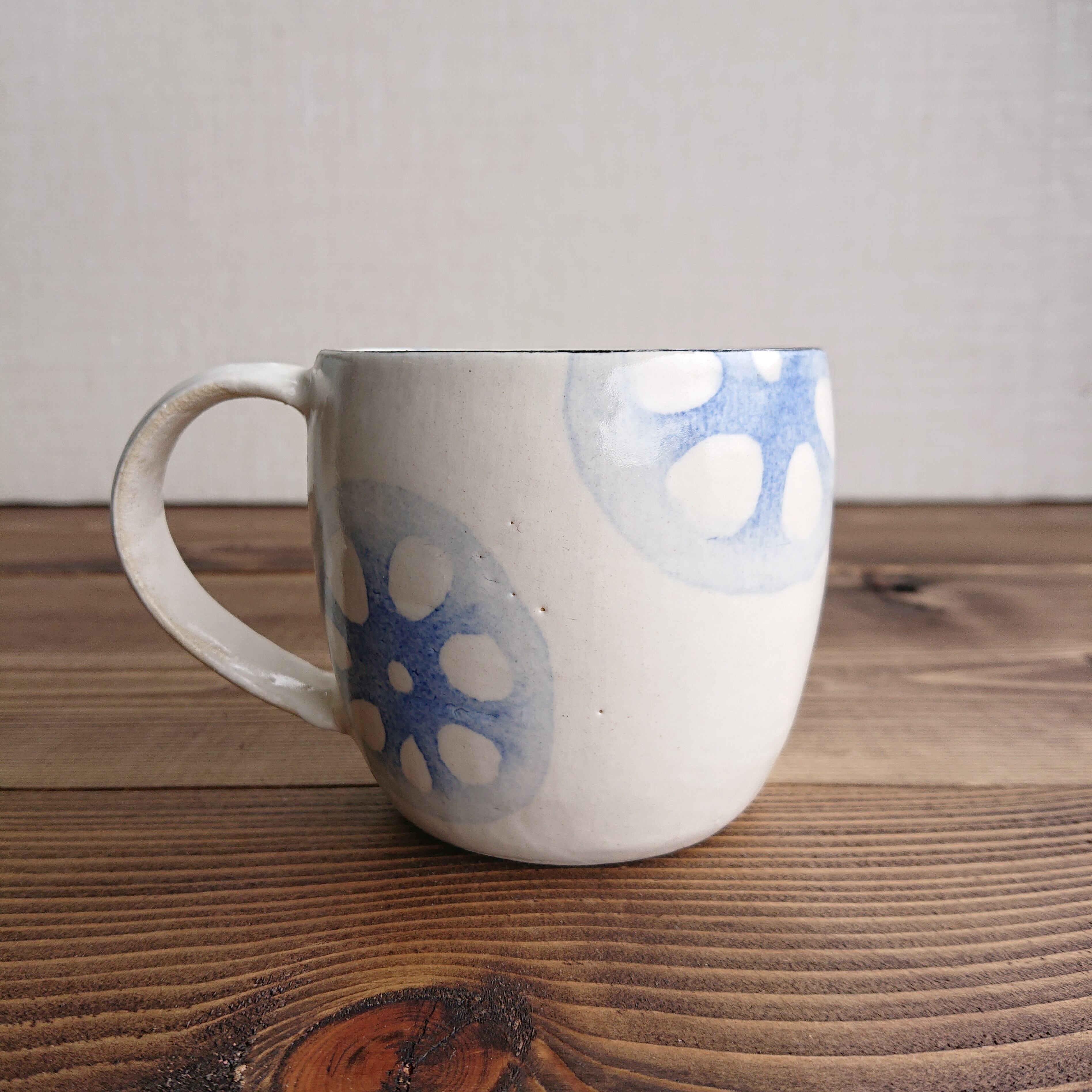 白地に優しく浮かぶレンコンや花の絵柄に心が和みます。