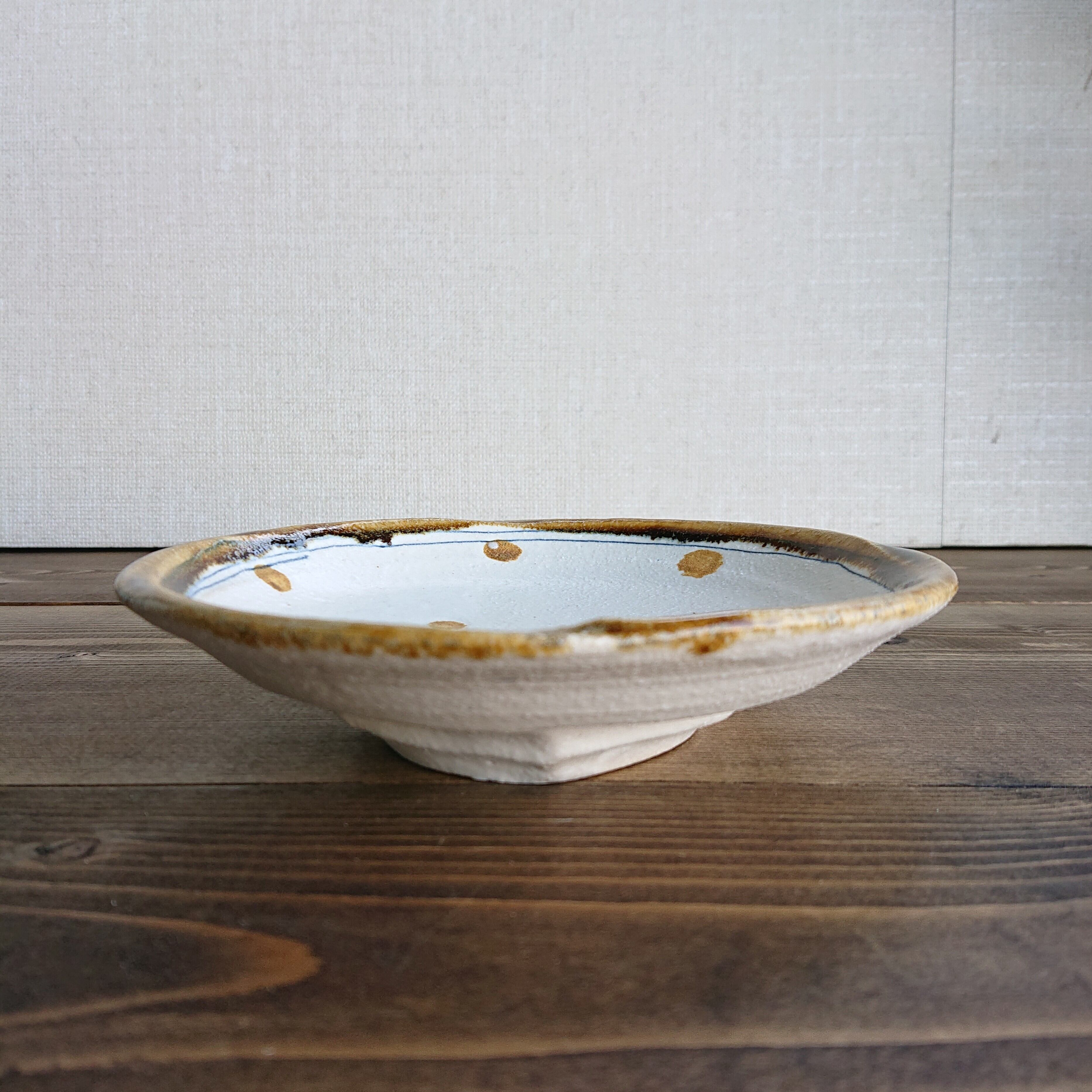 粉引の温かみのあるアイボリーにカラシ色のドット柄が優しく描かれています。