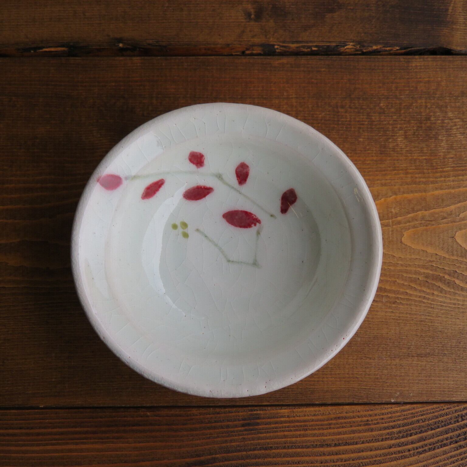 ほんわかとした赤い葉っぱの絵付けが優しい雰囲気の小鉢です。