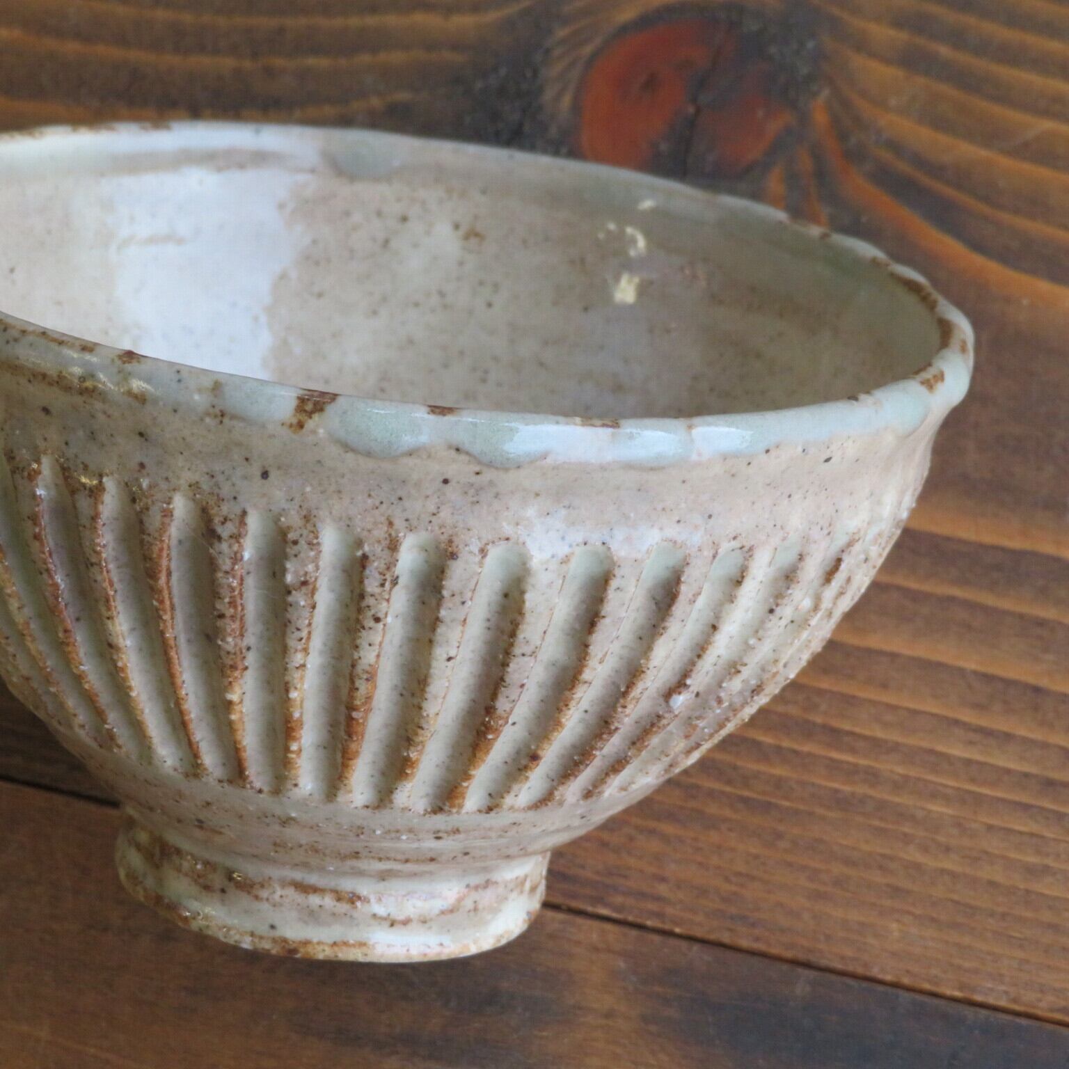 ドレープの様な深いしのぎ模様がとても味わい深いお茶碗です。