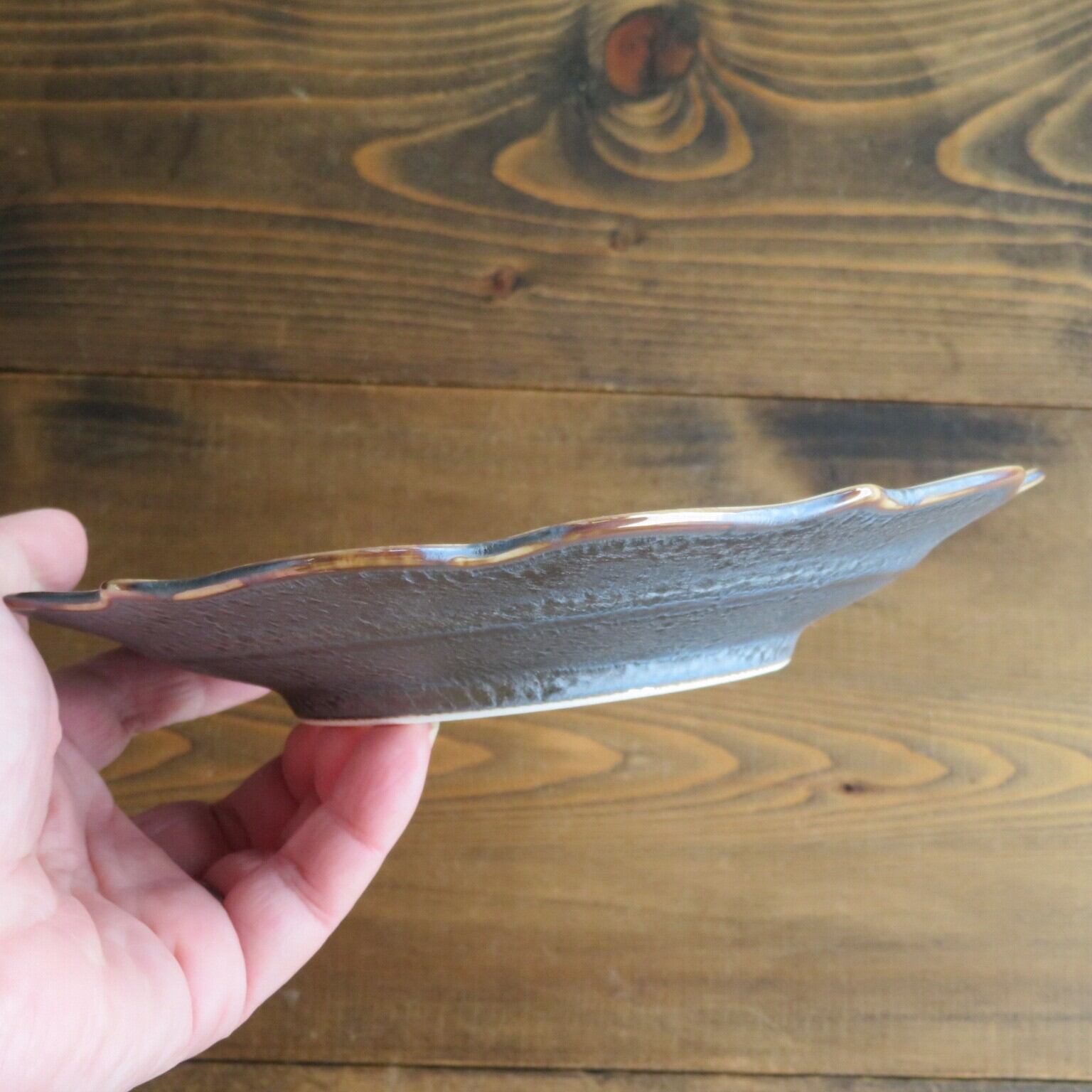 フレームの様なデザイン性のあるリムと、食材が映える濃いブラウンの色がお料理を引き立てます。