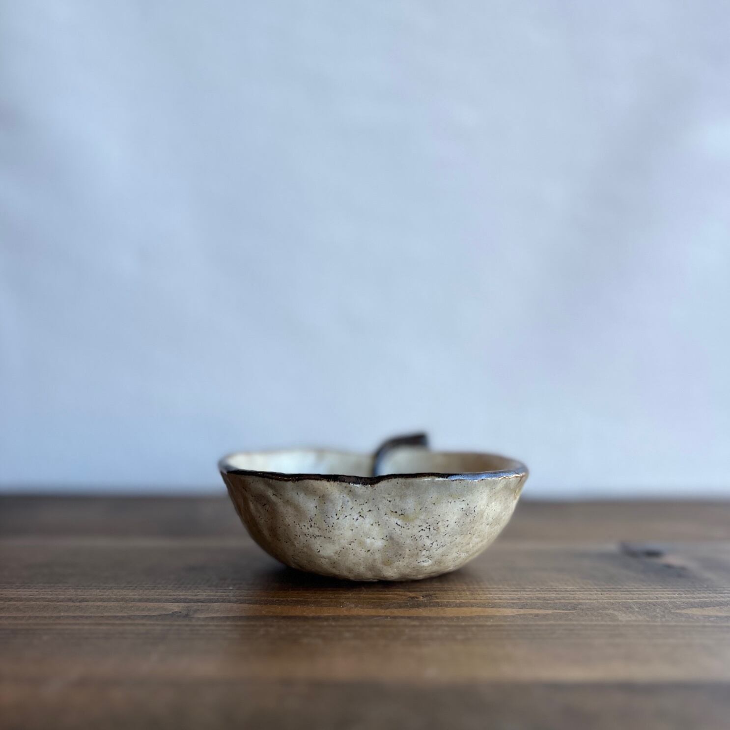 全体に石目(表面に石を叩き付けて風合いを出す技法)が施されており、そのでこぼこした手触りがまた、素朴な雰囲気とよくマッチしています。